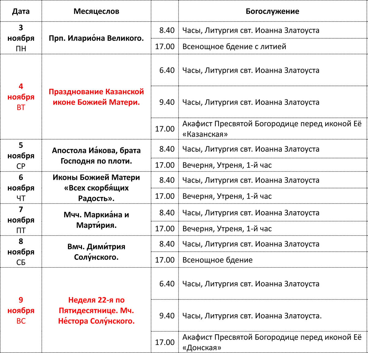 Расписание богослужений 3 - 9 ноября 2025 (в pdf)